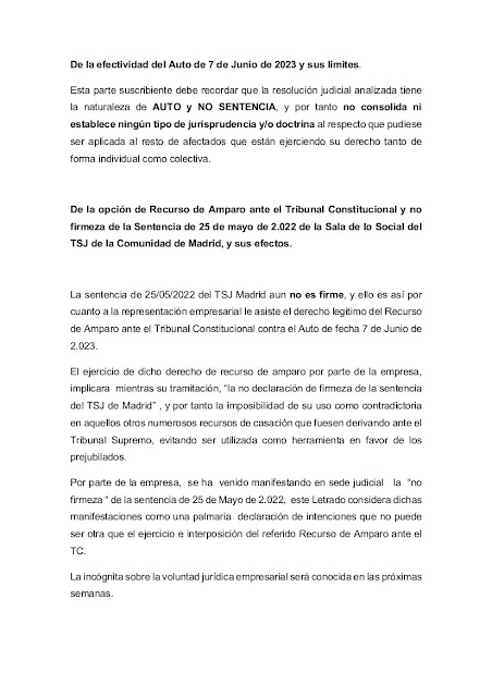 INFORME DE NUESTRO LETRADO SOBRE EL AUTO DEL TS DE 7 DE JUNIO DE 2023.